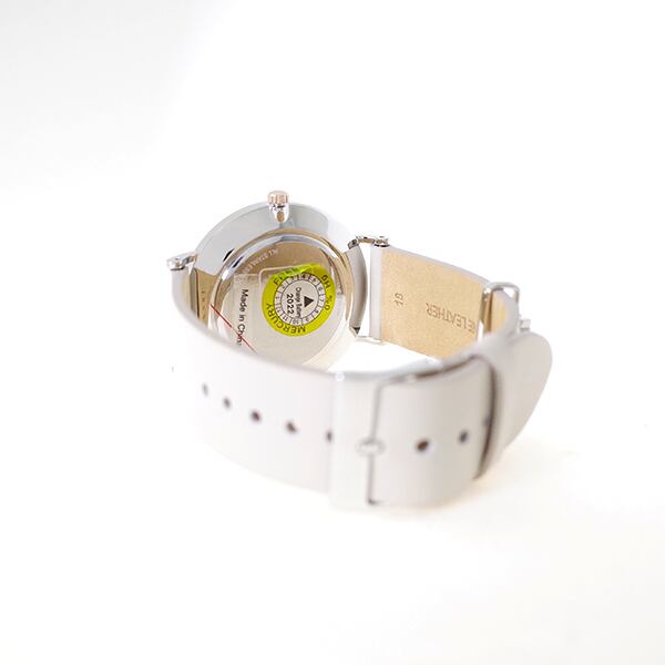 クオーツ、3気圧防水、カラー:シルバー(文字盤)、ライトグレー(ベルト)ローズゴールド(インデックス)