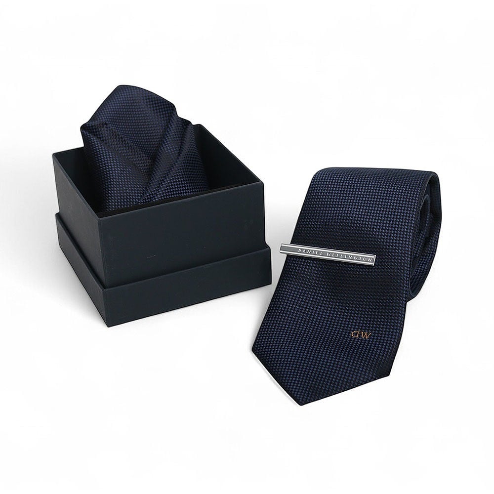ダニエルウェリントン DANIEL WELLINGTON ネクタイ&チーフ&タイバー 3点セット DW02800001 メンズ ネイビー ネクタイ