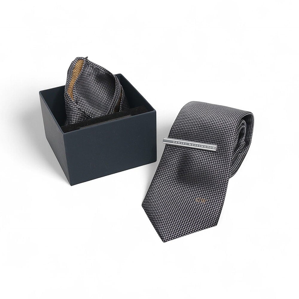 ダニエルウェリントン DANIEL WELLINGTON ネクタイ&チーフ&タイバー 3点セット DW02800002 メンズ グレー ネクタイ