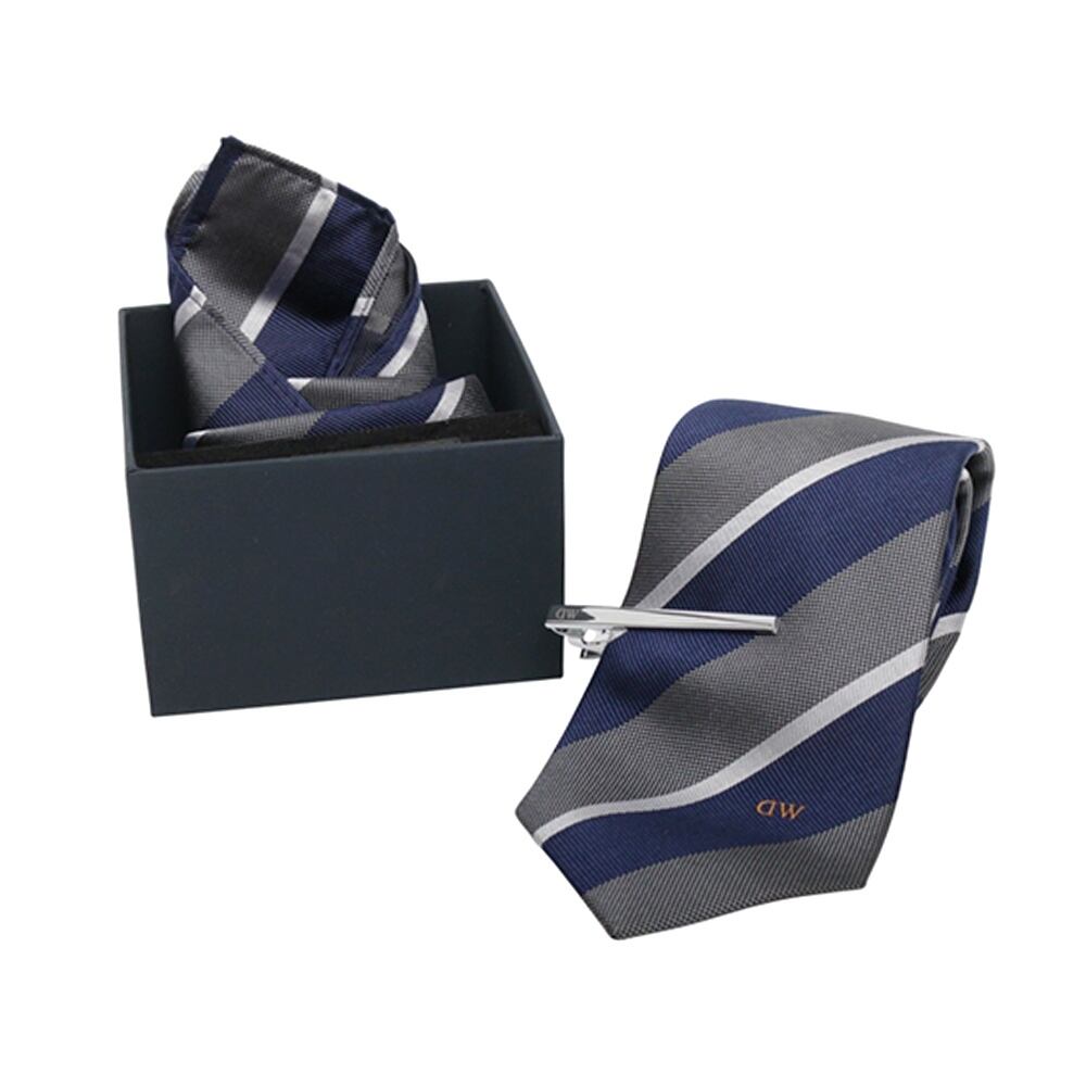 3点セット(ネクタイ・チーフ・タイバー)、カラー:NAVY×GRAY(ネイビー×グレー)