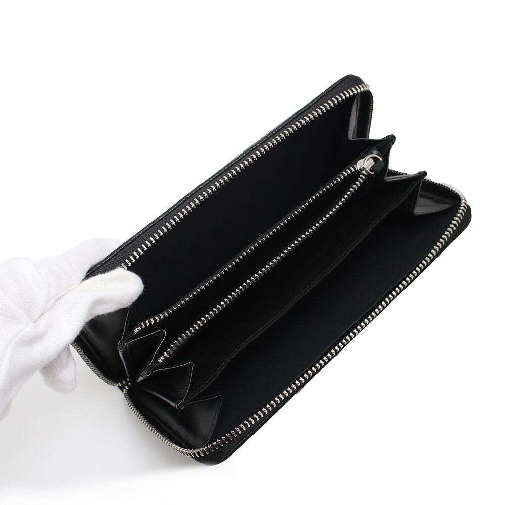 開閉:ファスナー式、ポケット 内側:札入れ×3、カード入れ×12、オープンポケット×2、小銭入れ(ファスナー)×1、カラー:ブラック